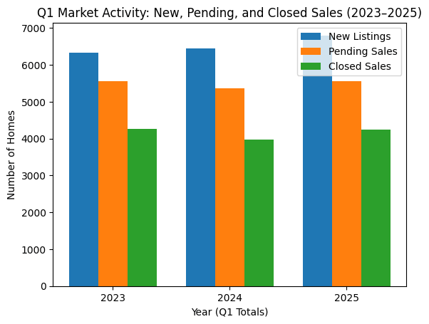 Roughly 5,400–5,600 homes go pending in Q1.